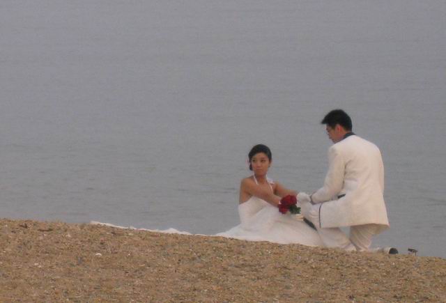 Да, это было похоже на постановочную фотосессию. Да, несколько фотографов действительно их фотографировало. Но это были — не актеры, а простые жених и невеста в обычном ритуале китайской свадьбы.