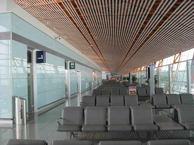 Аэропорт Пекина больше похож не на один аэропорт, а на огромный город. Несколько совершенно громадных залов, больше похожих на гигантские стадионы. Не всегда мог разглядеть, где зал кончается… Из одной части аэропорта на другую часть мы ехали на электричке (монорельс, курсирует каждые 3 минуты).
