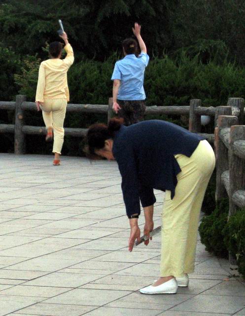 Китайцы — утренняя нация, встают рано, в 5-6 часов, и действительно большими группами на улице делают разные зарядки. Сегодня утром я бегал к морю, видел занимающихся цигуном, тай-цы, китайским бадминтоном (вариант с двумя ракетками и вариант ногами, специальным ножным воланом), работу с мечом, у-шу и просто купающихся (хотя море пока холодное).